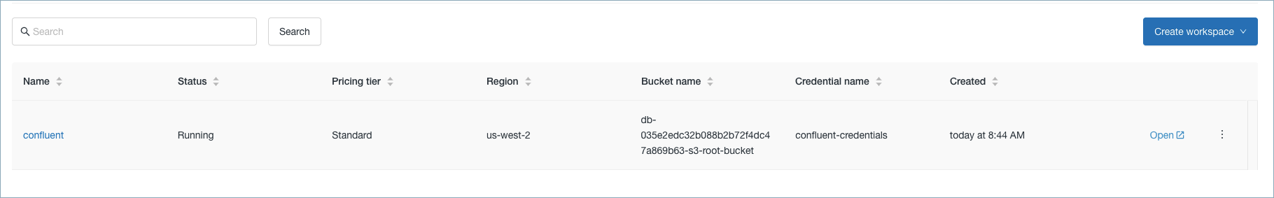 Click Open on the Databricks console.