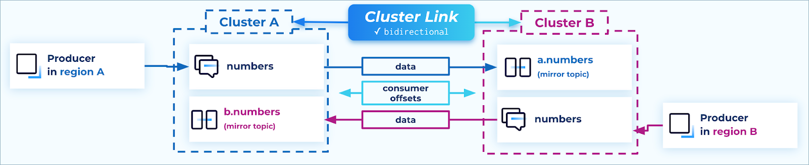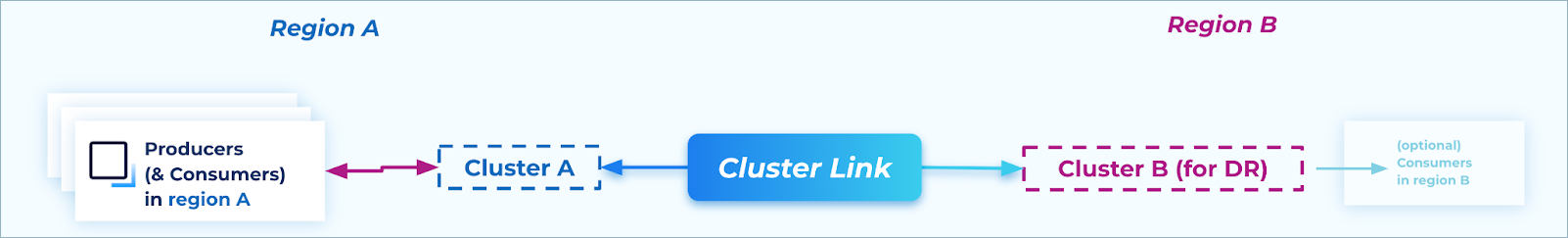 Cluster Linking offers fast, efficient failovers to the DR region for testing, and fast, efficient fail back to the original region.