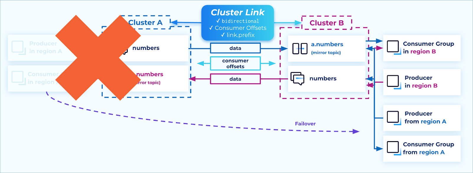 Deploying a disaster recovery strategy with Cluster Linking can increase availability and reliability of your mission-critical applications by minimizing data loss and downtime during unexpected disasters, like public cloud provider outages. This document will explain how to design your disaster recovery strategy and execute a failover.