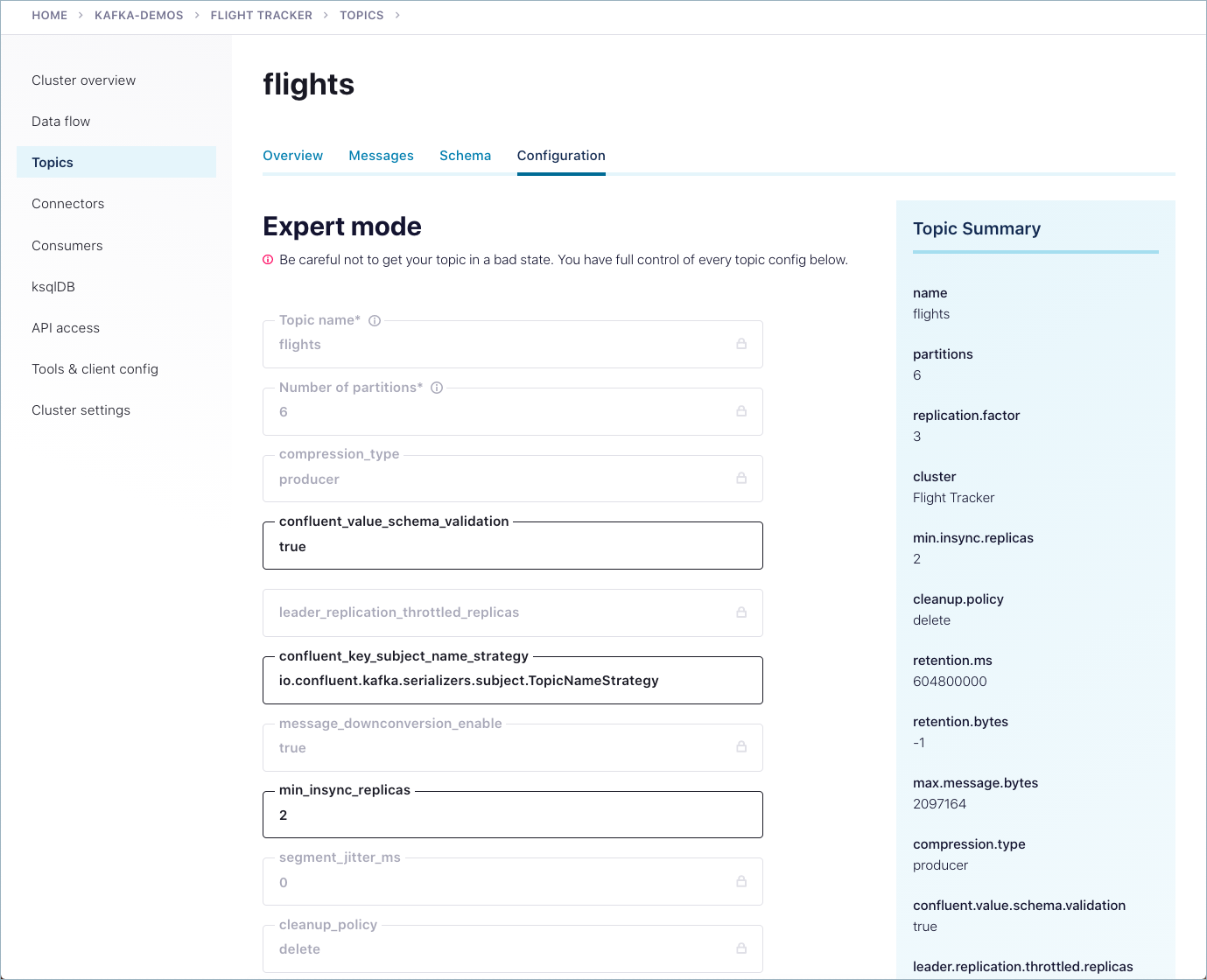 confluent kafka topic create flights --config confluent.value.schema.validation=true