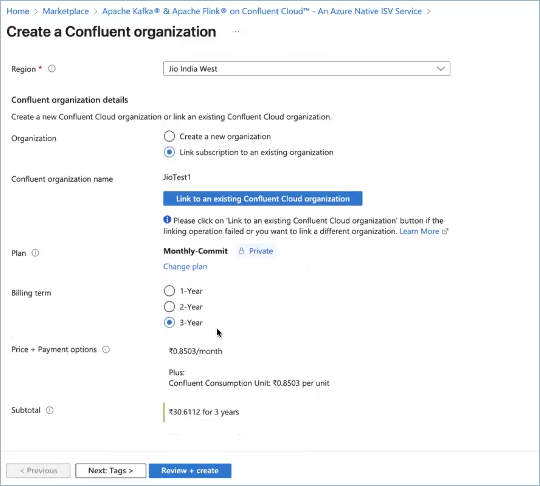 Get Started with Confluent Cloud on the Jio Marketplace with Commitments¶