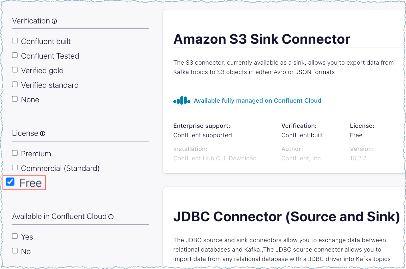 Verify that it is an open-source connector. You can list all open- source connectors by selecting Free under License.