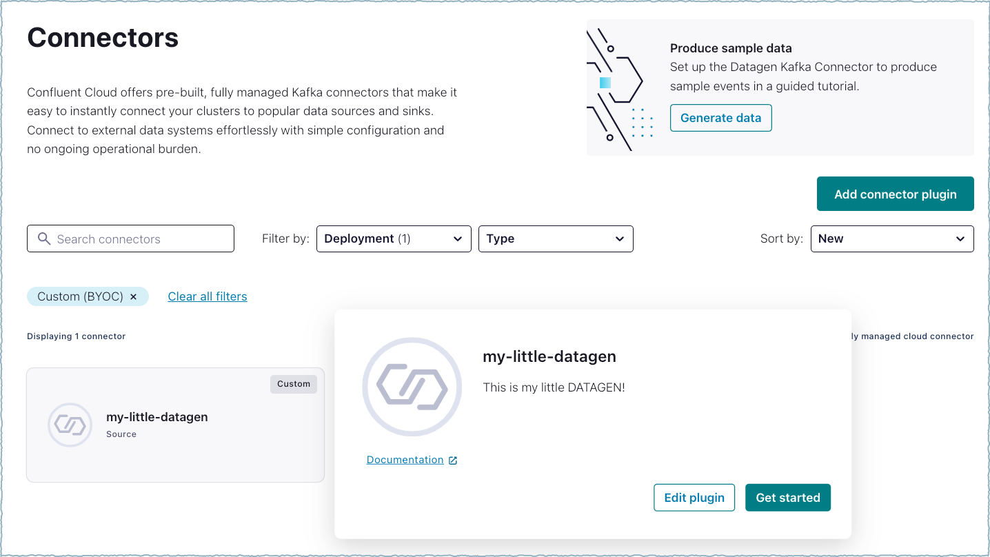 After you have identified a data system you want to source data from or sink data to, you need to get a connector. The following options are available for getting a custom connector to use in Confluent Cloud: