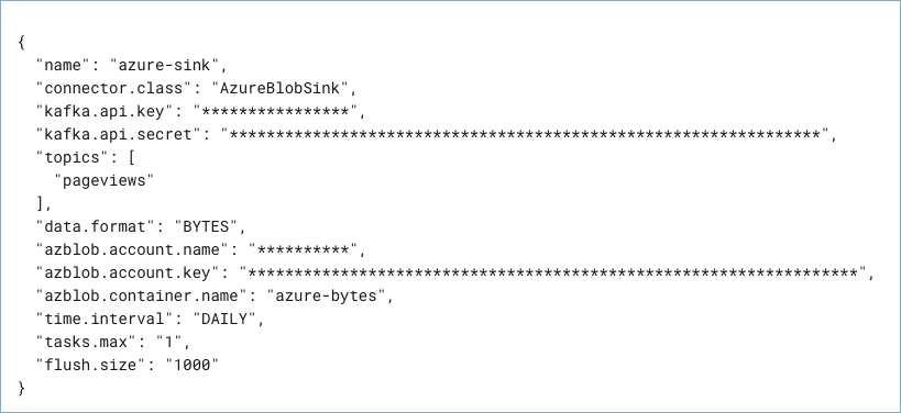 You can use the fully-managed Azure Blob Storage Sink connector for Confluent Cloud to export Avro, JSON Schema, Protobuf, JSON (schemaless), or Bytes data from Apache Kafka® topics to Azure storage in Avro, JSON, or Bytes format. Additionally, for certain data layouts, the connector exports data by guaranteeing exactly-once delivery semantics to consumers of the objects it produces.