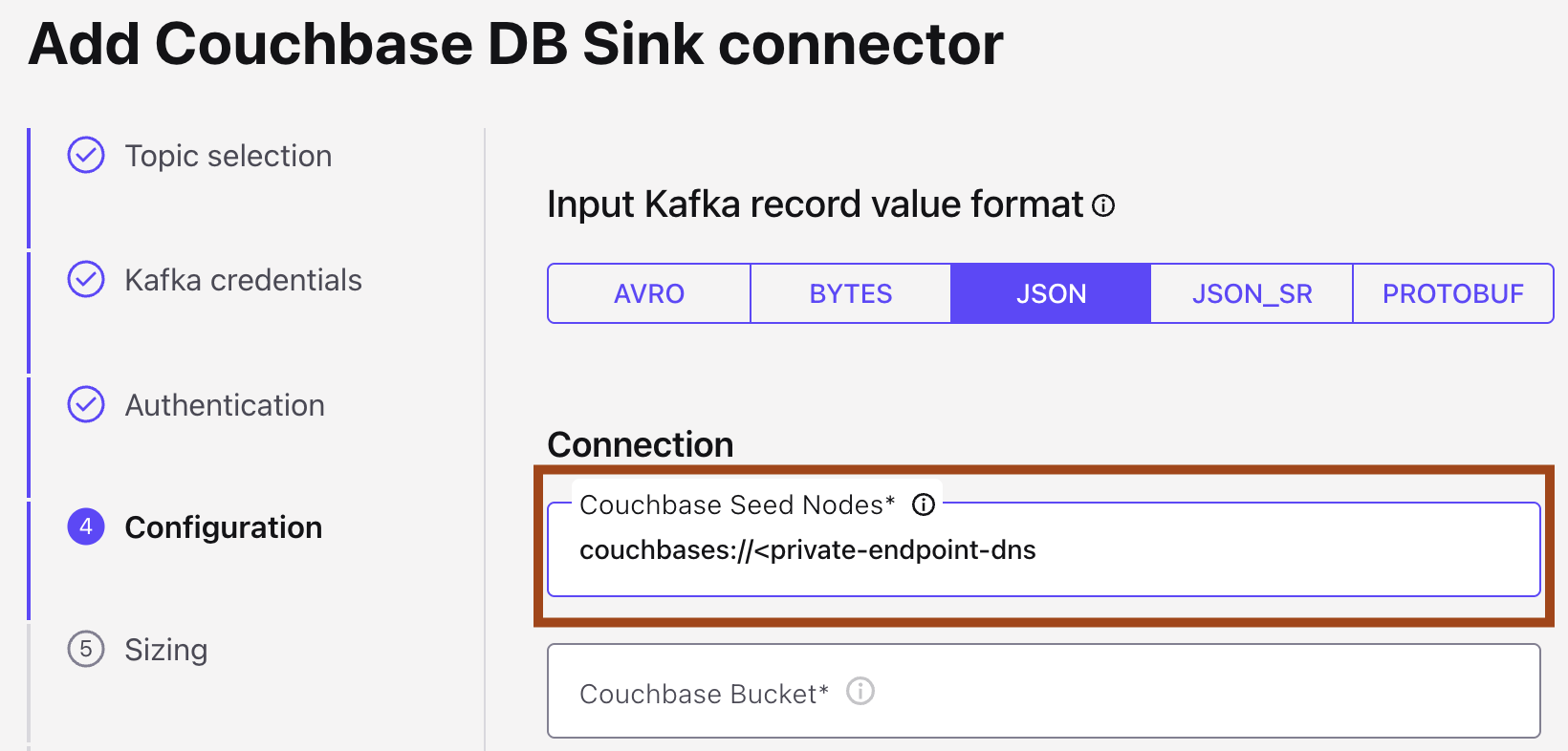 This topic presents the steps for configuring the Couchbase Sink connector in Confluent Cloud with Azure Private Link and Egress Private Link Endpoint.