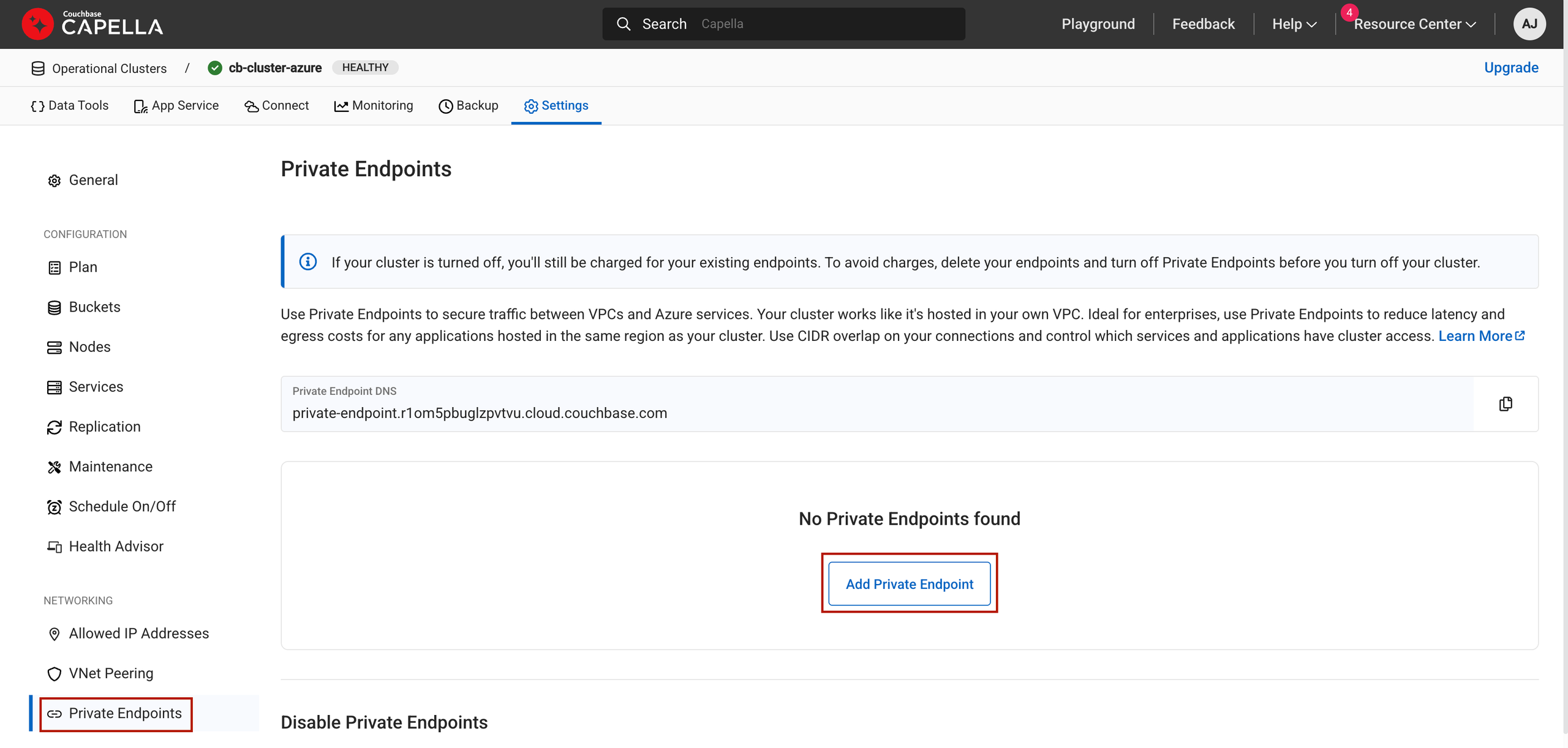 Add a Couchbase Capella Private Endpoint¶