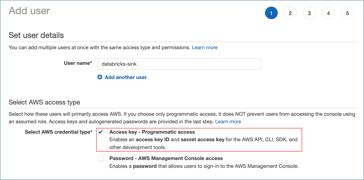 Create a new AWS user. Be sure to give the user (the connector) programmatic access.
