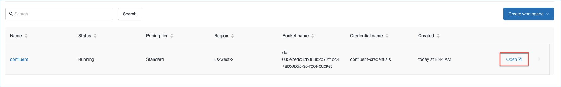 Click Open on the Databricks console.