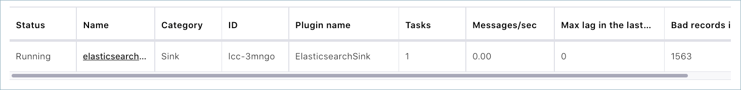 key.ignore: Whether to ignore the record key for the purpose of forming the Elasticsearch document ID. When this is set totrue, document IDs are created from the topic name, partition, and offset (i.e.,topic+partition+offset).schema.ignore: Whether to ignore schemas during indexing. When this property is set totrue, the record schema is ignored and Elasticsearch infers the mapping from the data. For this to work, Elasticsearch dynamic mapping must be enabled.compact.map.entries: Defines how map entries with string keys in record values should be written to JSON. When this property is set totrue, the entries are written compactly as`"entryKey": "entryValue". Otherwise, map entries with string keys are written as a nested document ({"key": "entryKey", "value": "entryValue"}).behavior.on.null.values: How to handle records with a non-null key and a null value (i.e., Kafka tombstone records). Valid options areignore,delete, andfail. Defaults toignore.drop.invalid.message: Whether to drop a Kafka message when it cannot be converted to an output message. Defaults tofalse.batch.size: The number of records to process as a batch when writing to Elasticsearch. This value defaults to2000.linger.ms: Linger time in milliseconds for batching. Records that arrive in between request transmissions are batched into a single bulk indexing request, based on thebatch.sizeconfiguration. Normally this only occurs under load, when records arrive faster than they can be sent out. However, you may want to reduce the number of requests under light load to get the benefits from bulk indexing. In other words, when a pending batch is not full, rather than immediately sending it out the task waits up to the given delay. This allows other records to be added so that they can be batched into a single request. This value defaults to1000ms (1 second).flush.timeout.ms: The timeout in milliseconds to use for periodic flushing and waiting for buffer space to be made available by completed requests, as records are added. If this timeout is exceeded the task fails. This value defaults to10000ms.connection.compression: Whether to use Gzip compression on the HTTP connection to ElasticSearch. To make this setting work thehttp.compressionsetting must be set totrueon the Elasticsearch nodes. For more information about the Elasticsearch HTTP properties, see Elasticsearch HTTP Settings. Defaults tofalse.data.stream.type: Describes the generic type of data to be written to a data stream. Allowed values includelogs,metrics,none, and any custom index templates from the destination cluster. When set, it will be used in conjunction withdata.stream.datasetto construct the data stream name in the form of {data.stream.type}-{data.stream.dataset}-{data.stream.namespace}. The default isnone, which directs the connector to write to regular indices.
