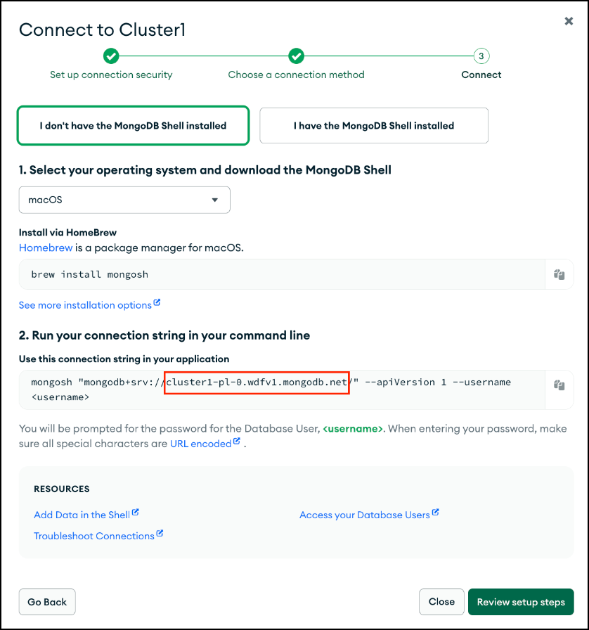 In MongoDB, create a private endpoint for your Dedicated MongoDB Atlas database: