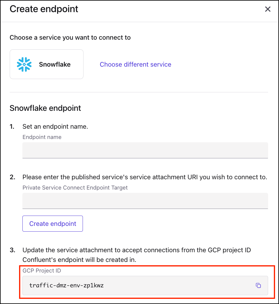 Make a note of Confluent’s Google Cloud Account ID associated with the Private Service Connect Endpoint.
