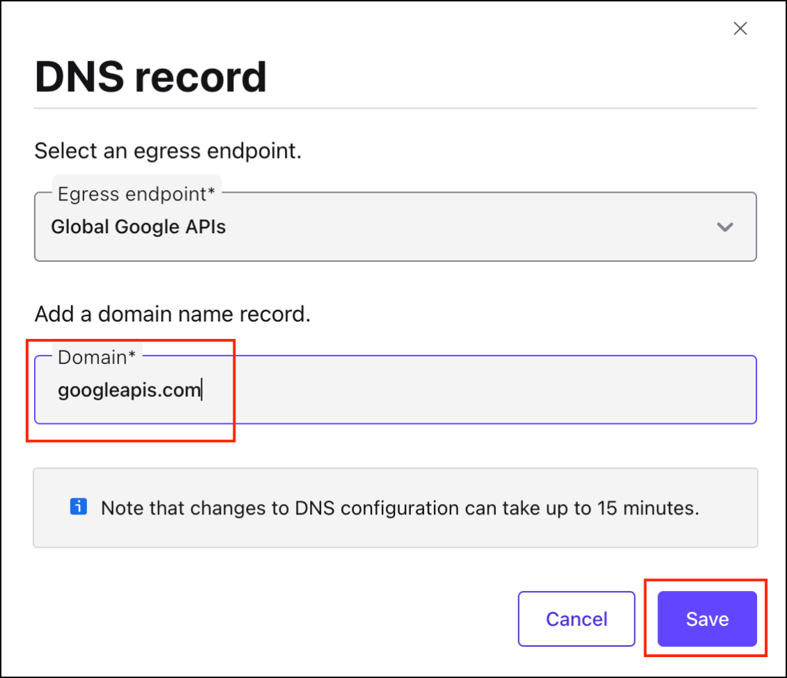 To resolve the error, remove the googlesapis.com DNS record and replace with service-specific DNS record.