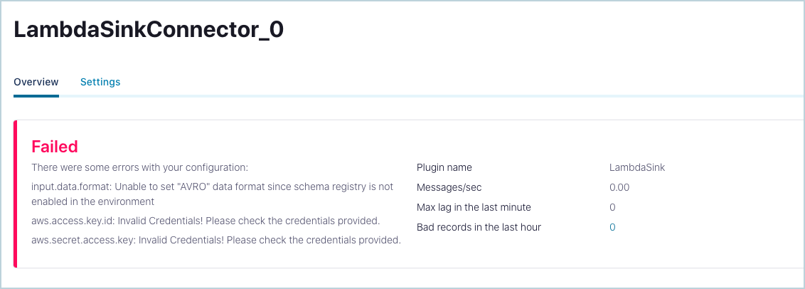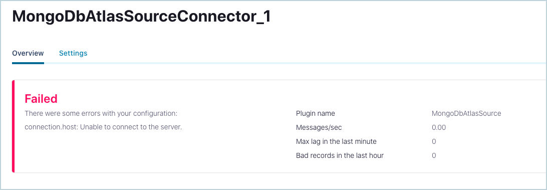 Note that synchronous validation is turned off. If you attempt to load an invalid connector configuration (for example, wrong credentials, collections that do not exist, or an S3 bucket that does not exist) you do not get immediate validation. The connector will start, but then fail with an error message and a list of configuration errors.