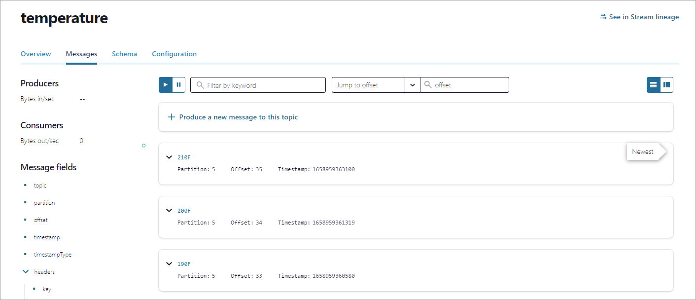Click the Messages tab, and you should see the messages sent from your client to the MQTT Proxy and then to Confluent Cloud.
