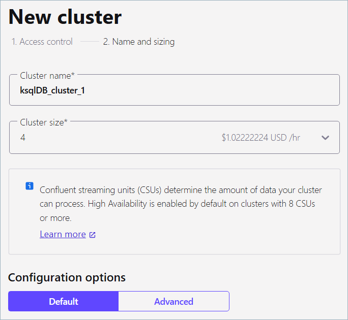Confluent Streaming Unit pricing varies slightly depending on cloud provider and region. Pricing is shown in the web interface as part of ksqlDB provisioning so that you can see exact pricing for your cloud and region of choice.