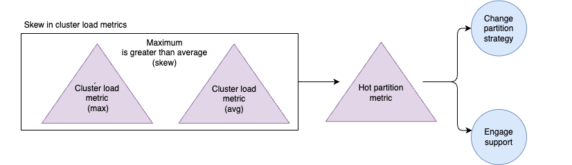 Data skew refers to an uneven distribution of workload across different partitions in a cluster. Skew manifests as a significant difference between the average and maximum values of cluster load across partitions. Use the Metrics API to view metrics.
