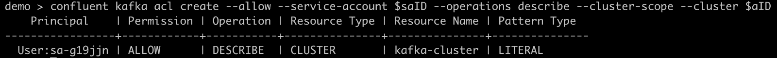 principal: (optional) Name of principal specified on the ACL. If left empty will default to the*wildcard, which will match all principals with the specifiedoperationandpermissionType.- For example, a service account with ID 12345 has this principal: