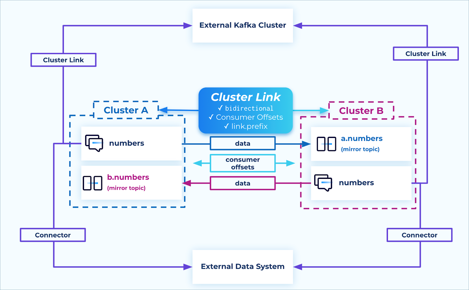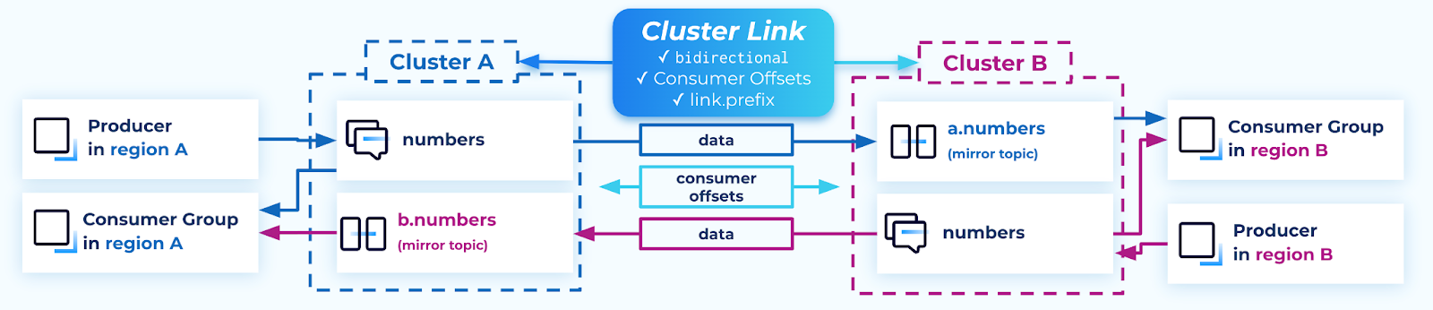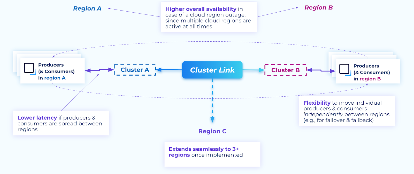 Cluster Linking offers fast, efficient failovers to the DR region for testing, and fast, efficient fail back to the original region.