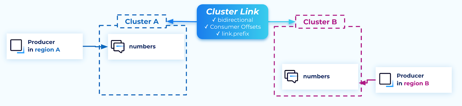 Cluster Linking enables you to have a copy of your topic data on a second cluster, so that you don’t lose all of your business-critical event data should a regional outage or disaster occur. However, Cluster Linking is an asynchronous process. When producers produce messages to the source cluster, they get an acknowledgement (also known as an “ack”) from the source cluster independent of when, and often before, the cluster link replicates those messages to the DR cluster.