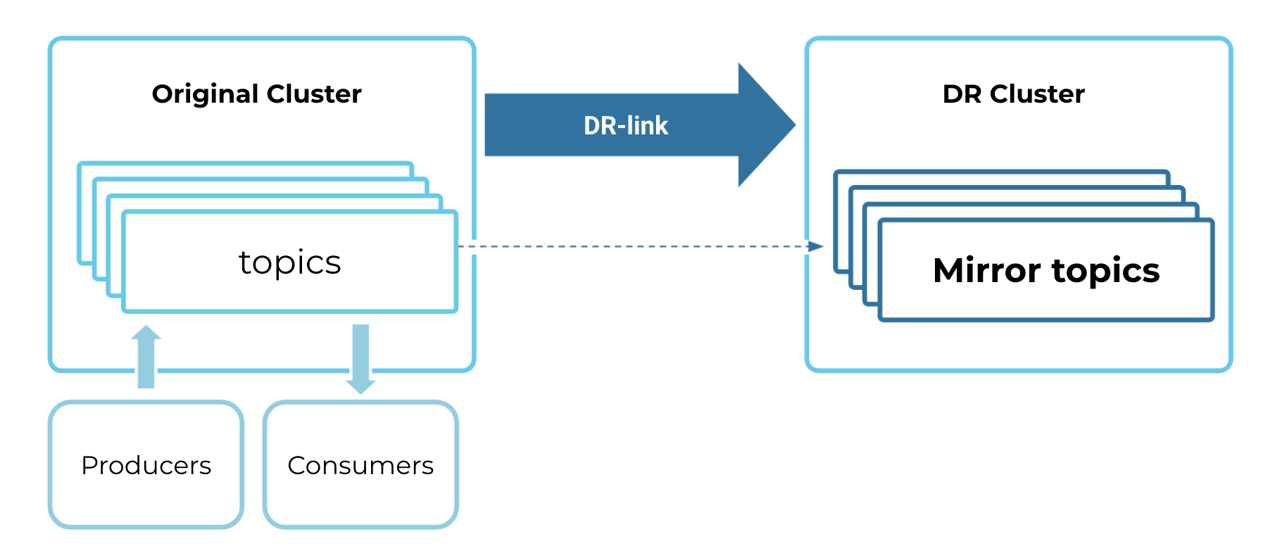 - The DR cluster needs up-to-date topic data so that consumers can process messages that they haven’t yet consumed. Consumers that are lagging can continue to process topic data while missing as few messages as possible. Any future consumers you create can process historical data without missing any data that was produced before the disaster. This helps you achieve a low Recovery Point Objective (RPO) when a disaster happens.