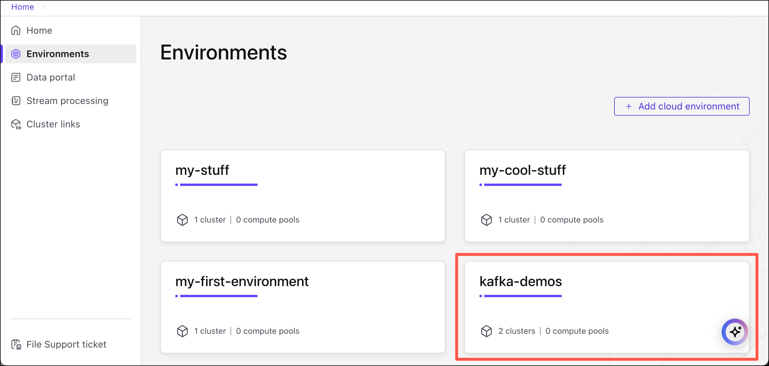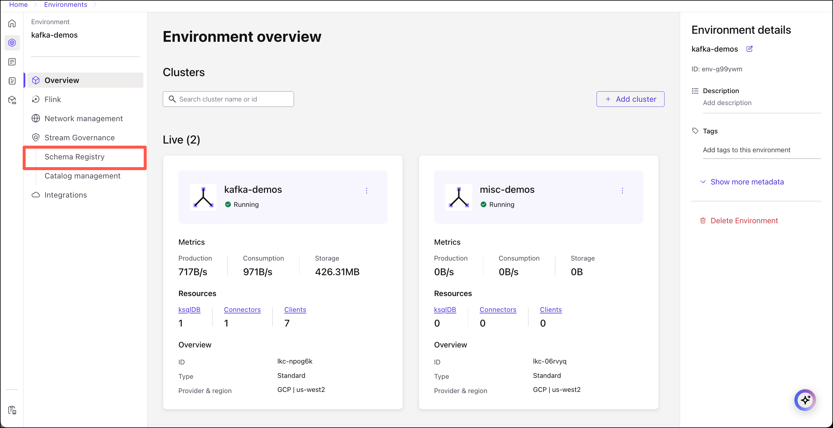 To view and manage Schema Registry for a Confluent Cloud environment: