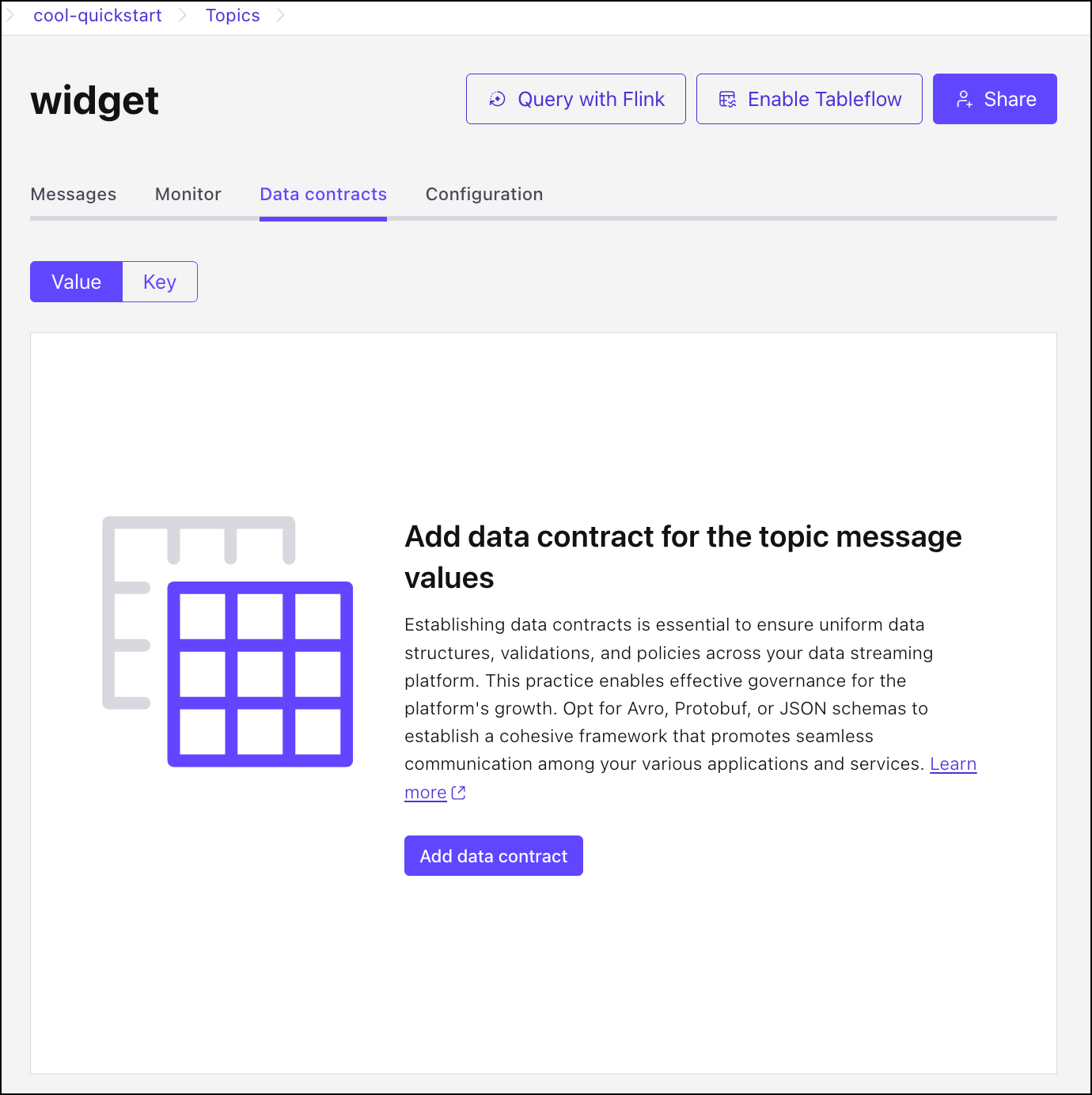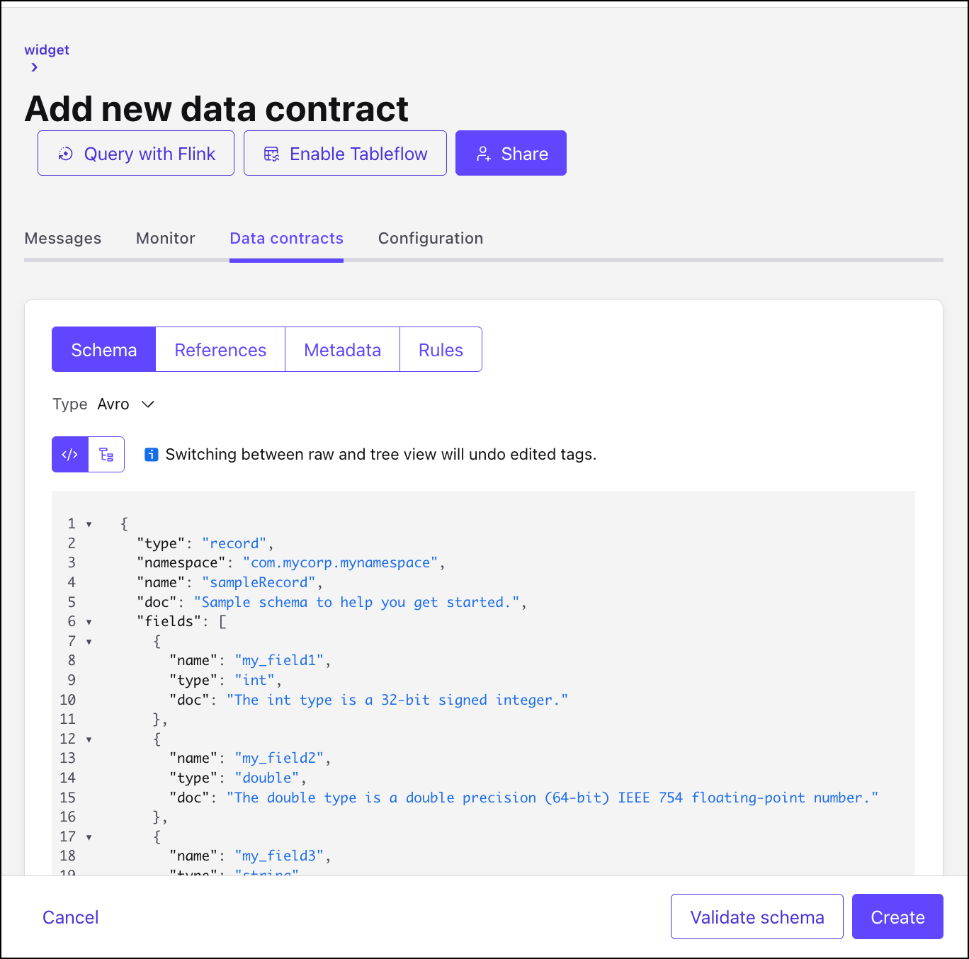 The following sections assume you have Schema Registry enabled. If you are just getting started with schemas, first see Quick Start for Schema Management on Confluent Cloud to learn how to enable Schema Registry and try out example workflows for basic tasks.