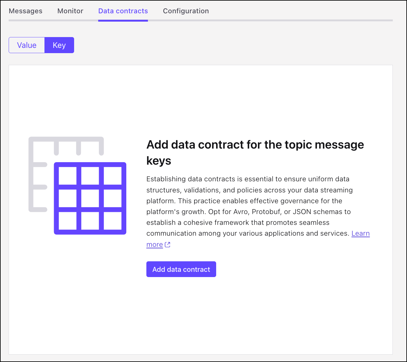 Select the Key or Value option for the schema. (The schema Value is displayed by default.)