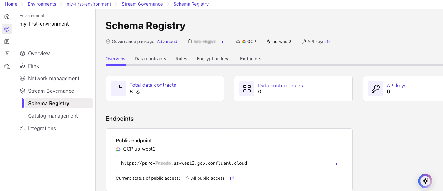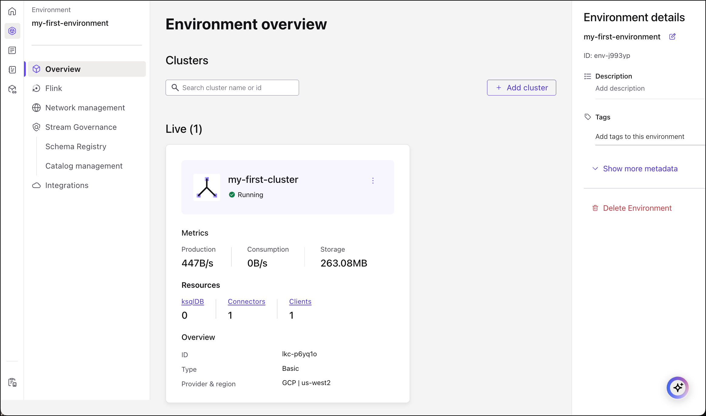 See Add a cloud environment and Manage Stream Governance Packages in Confluent Cloud to learn about Stream Governance package options.