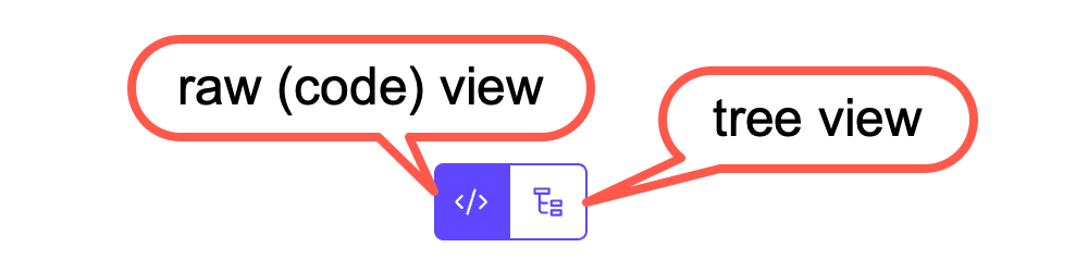 By default, schemas are displayed in a raw (code) view which allows you edit the schema as you would in a code editor. In edit mode (the “code view”), you can create and edit schemas as described in the sections below.