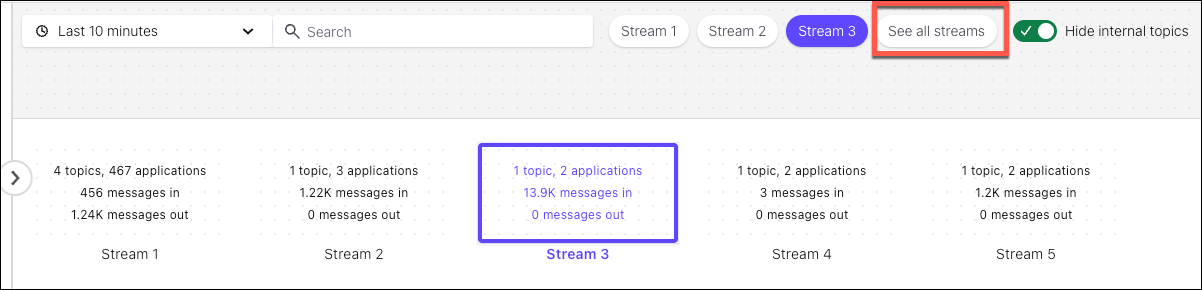 Click See all Streams on the upper part of a diagram to view cards representing the data flows.