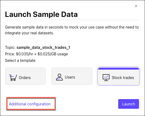 ksqlDB_stocks, and accept the defaults for cluster size. - Click Launch cluster.