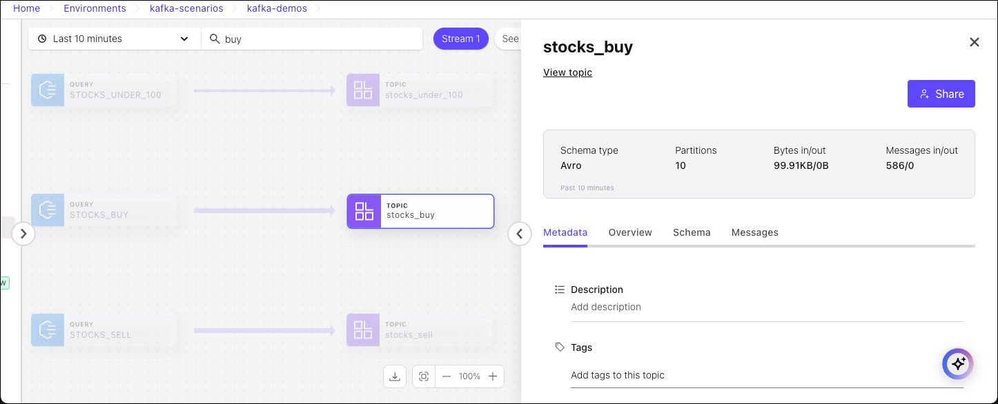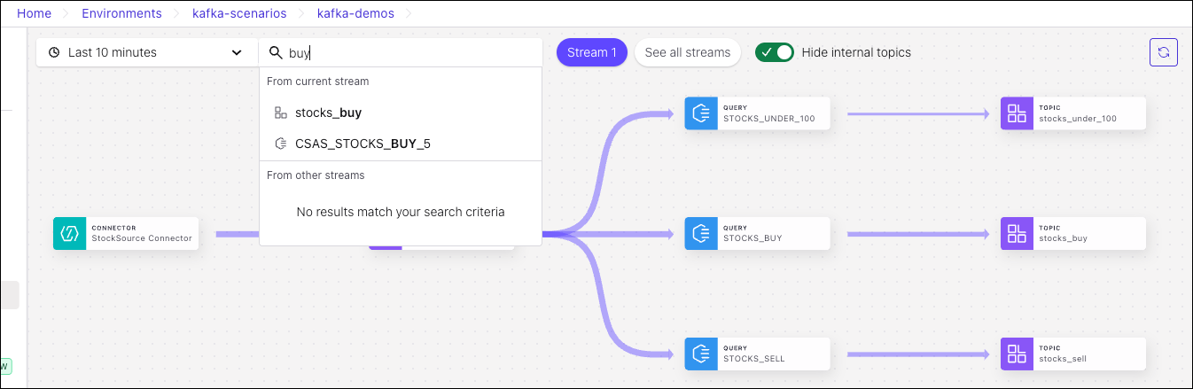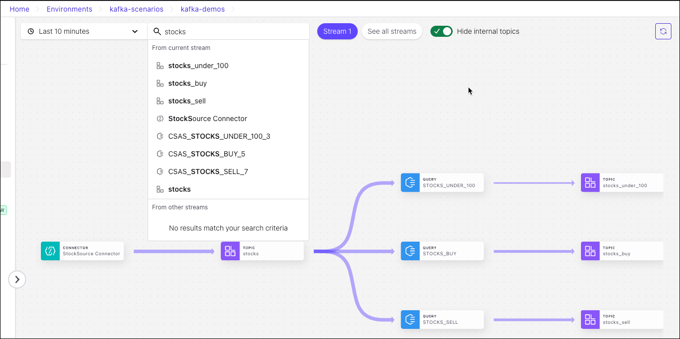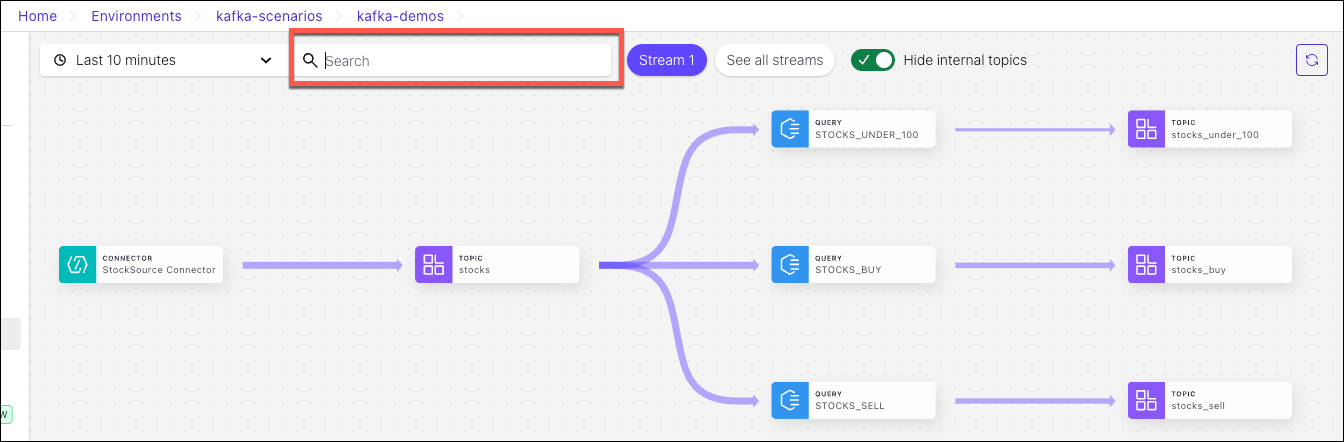 Many time customers have very complex streaming topologies with dozens if not hundreds of applications, services, topics, queries, and so on. With this feature they can easily isolate on the graph what they are interested in knowing more about.