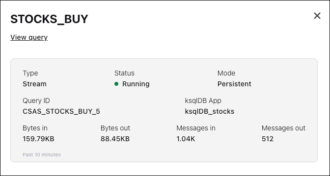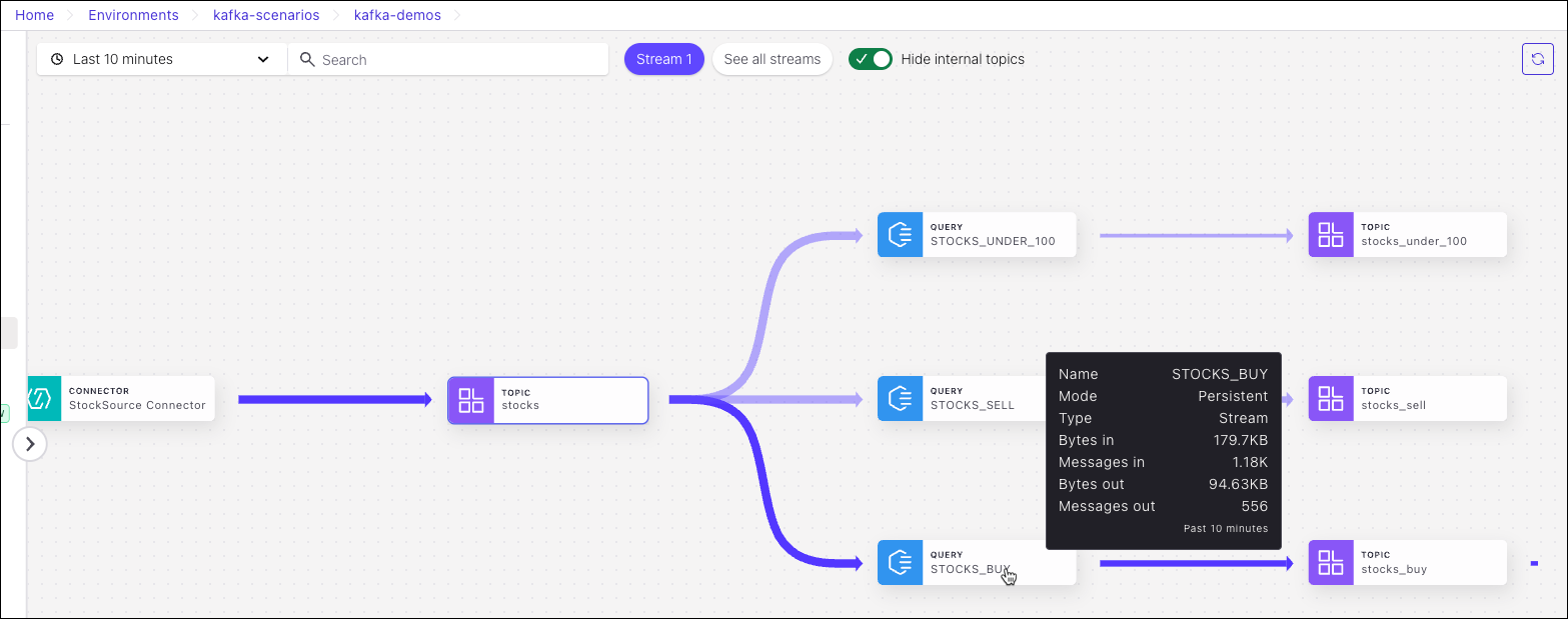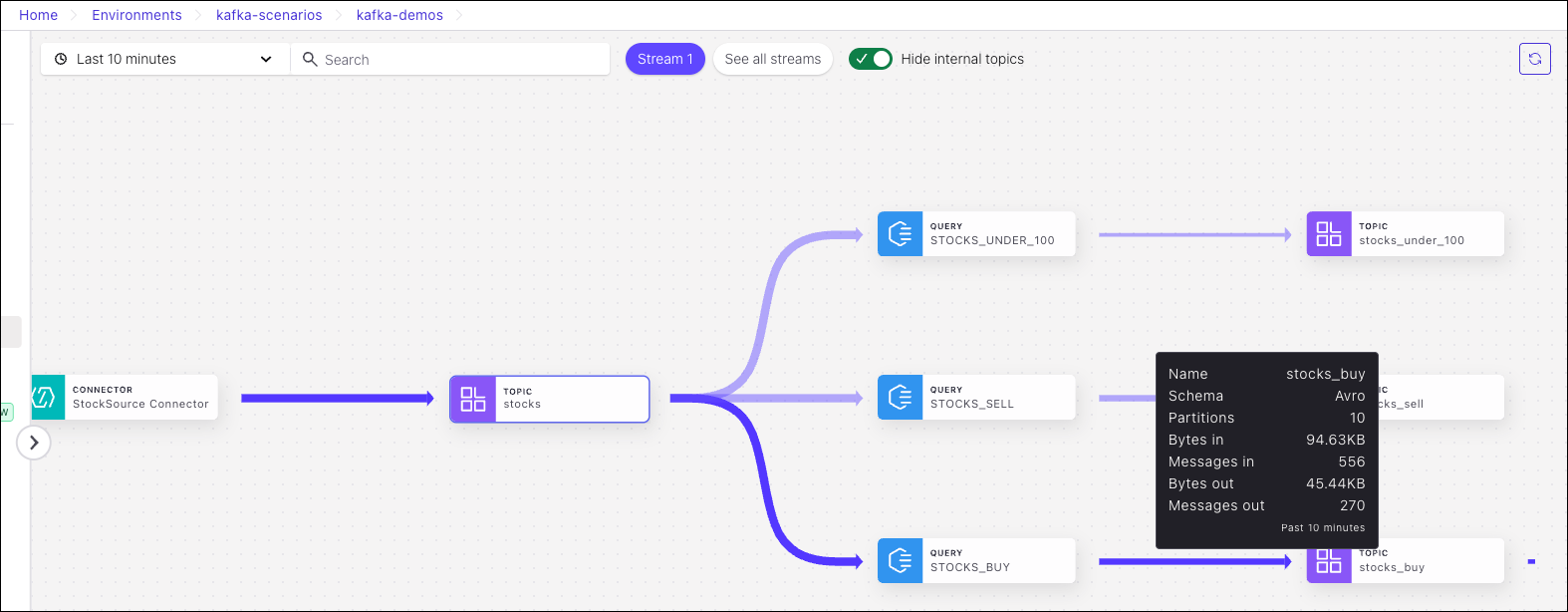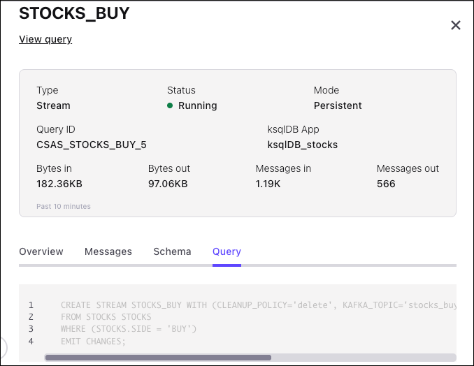 CREATE STREAM stocks_buy WITH (KAFKA_TOPIC='stocks_buy', PARTITIONS=10, REPLICAS=3) AS SELECT * FROM stocks WHERE side='BUY';