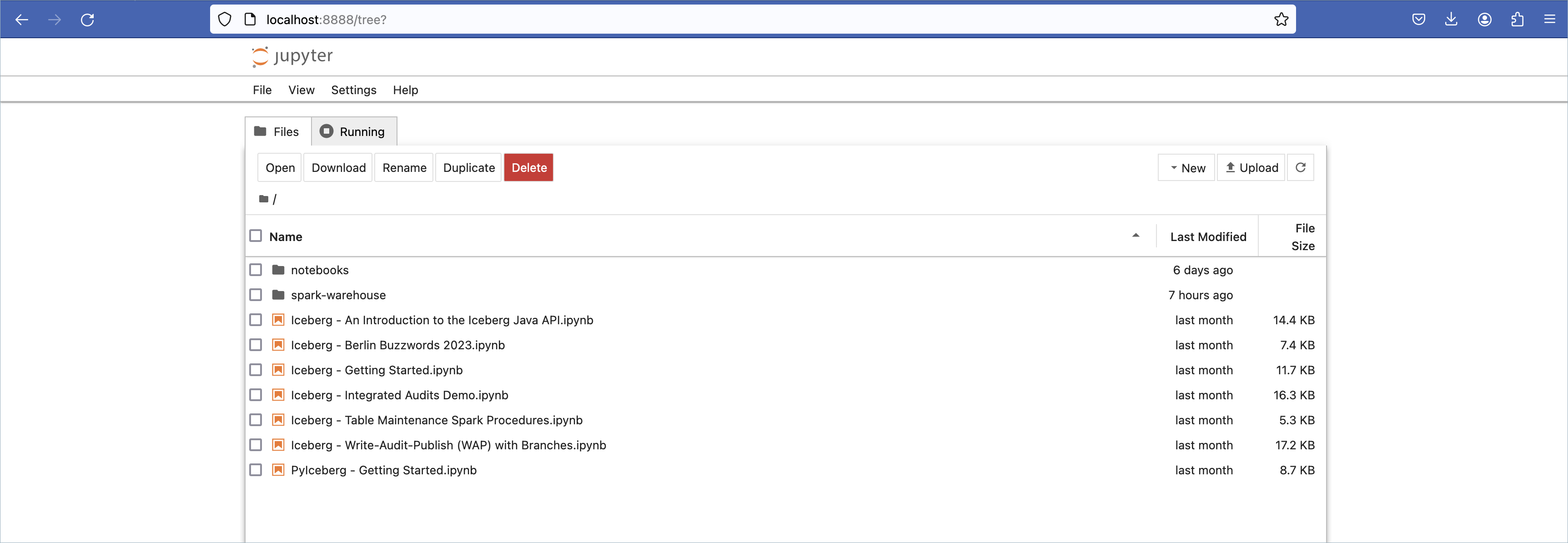 us-west-2.docker run -d \ --name spark-iceberg \ -v $(pwd)/warehouse:/home/iceberg/warehouse \ -v $(pwd)/notebooks:/home/iceberg/notebooks/notebooks \ -e AWS_REGION=${YOUR_CLUSTER_REGION} \ -p 8888:8888 \ -p 8080:8080 \ -p 10000:10000 \ -p 10001:10001 \ tabulario/spark-iceberg