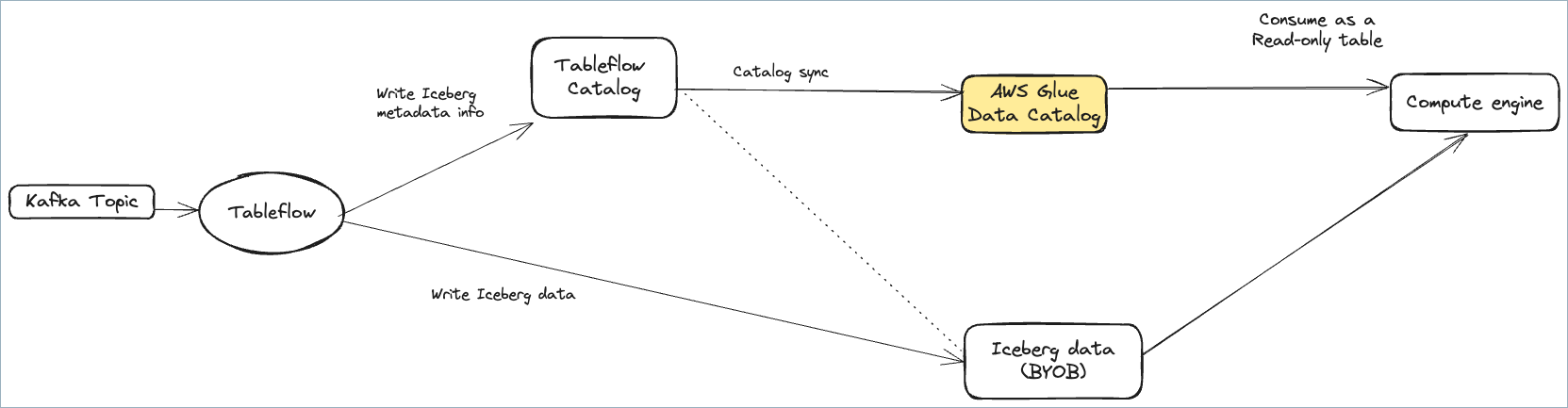 Integrating with the AWS Glue Data Catalog ensures that external catalogs maintain up-to-date and consistent metadata, while the Tableflow catalog remains the single source of truth.