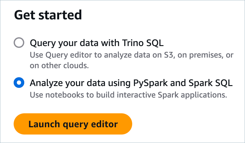 Log in to Amazon Athena and select Analyze your data using PySpark and Spark SQL.