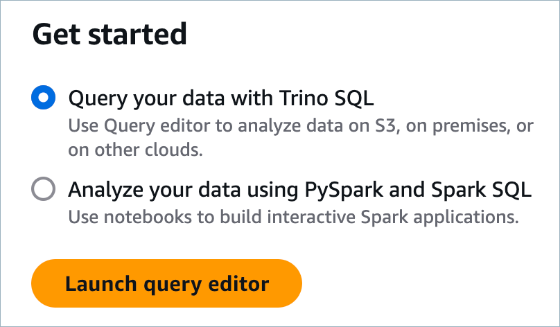 Log in to Amazon Athena and select Query your data with Trino SQL.