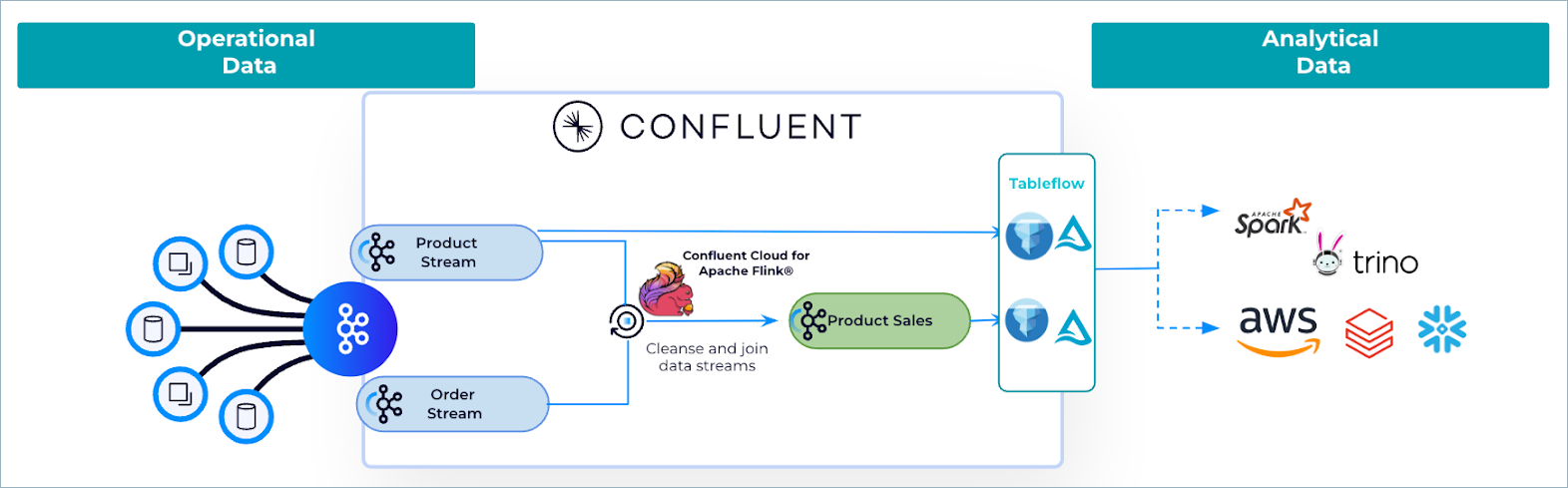 For instance, in the previous use case, Confluent Cloud for Apache Flink is used to execute stream processing—cleansing and joining data from multiple Kafka topics — to develop a new data product. This refined process enhances data quality and accessibility.